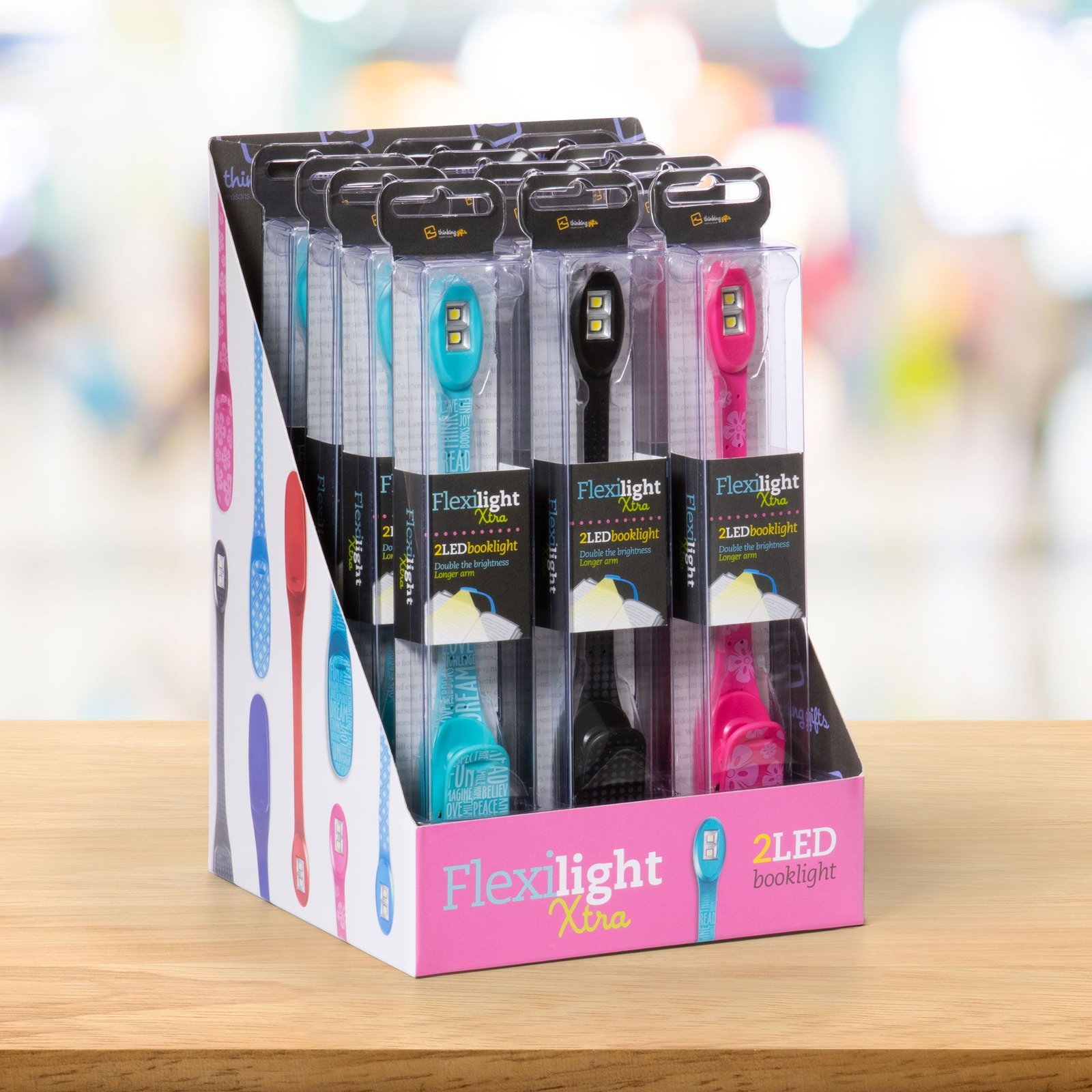 ¡Las linternas flexibles se han convertido en la sensación del momento! Posee una flexibilidad infinita debido a su interior de metal inteligente, y es lo suficientemente delgada como para utilizar de marcapáginas. ¡Llévate tu 2 en 1 en el mismo artículo! Su luz LED contiene 8 lúmenes de luz impresionantes y está fabricada con especificaciones muy altas. El compartimiento de la batería en la parte posterior es fácil de abrir y las baterías de litio CR2016 están incluidas.EXPOSITOR 12U SURTIDAS